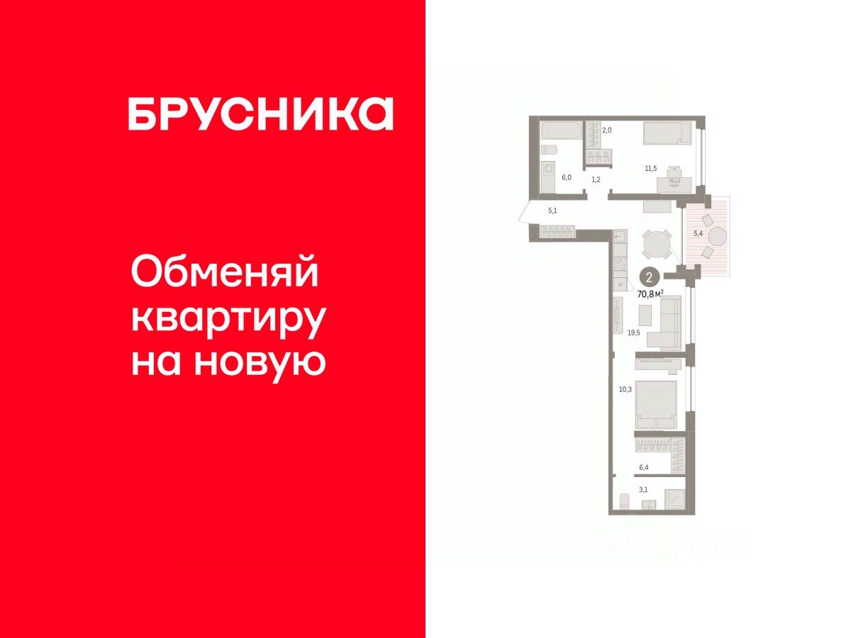 Просторная 2-комн. квартира с предчистовой отделкой в ЖК "Дом у озера" на 7 этаже. Общая площадь: 70.69 кв.м. Высота потолков 2.7 м.
