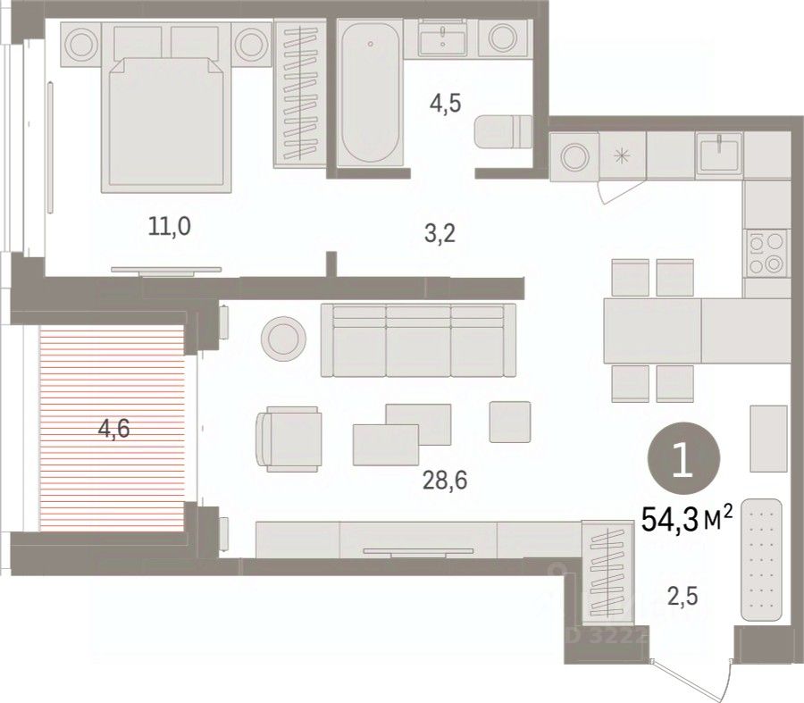Продается 1-комн. квартира с предчистовой отделкой в Кварталы "На Минской" на 12 этаже. Общая площадь: 54.34 кв.м., жилая: 11 кв.м., площадь просторной кухни-гостиной: 28.6 кв.м. Все окна выходят на одну сторону. В квартире одна лоджия, один совмещенный санузел. Высота потолков 2.7 м.