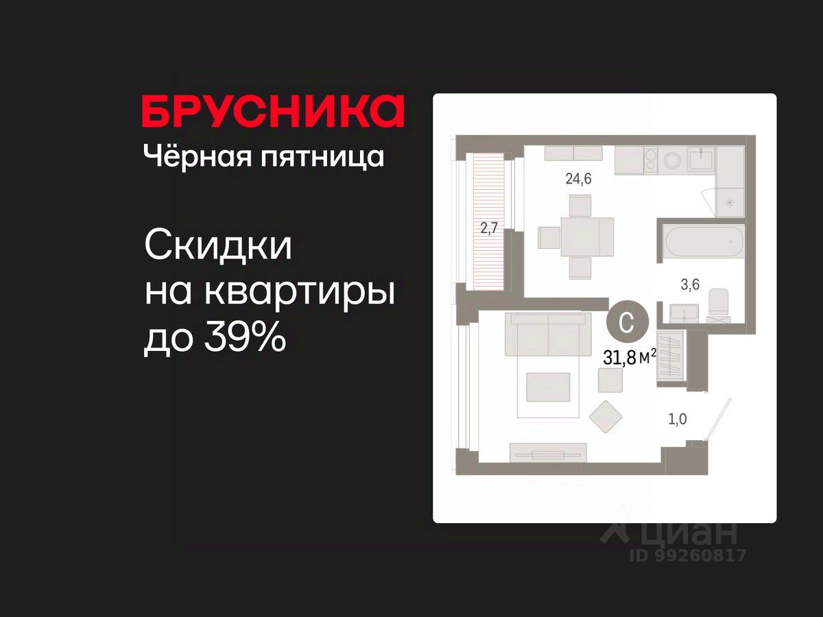 Студия в жилом районе "Зарека". Особенности планировки: предчистовая отделка, терраса на крыше.