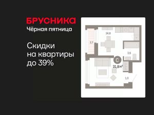 Продается однокомнатная квартира с предчистовой отделкой в ЖК "Зарека" на 13 этаже. Общая площадь: 31.83 кв.м., жилая: 8.3 кв.м., площадь просторной кухни-гостиной: 13 кв.м. Все окна выходят на одну сторону. В квартире один совмещенный санузел. Высота потолков 2.7 м.