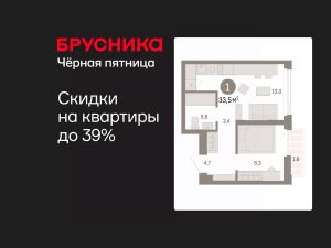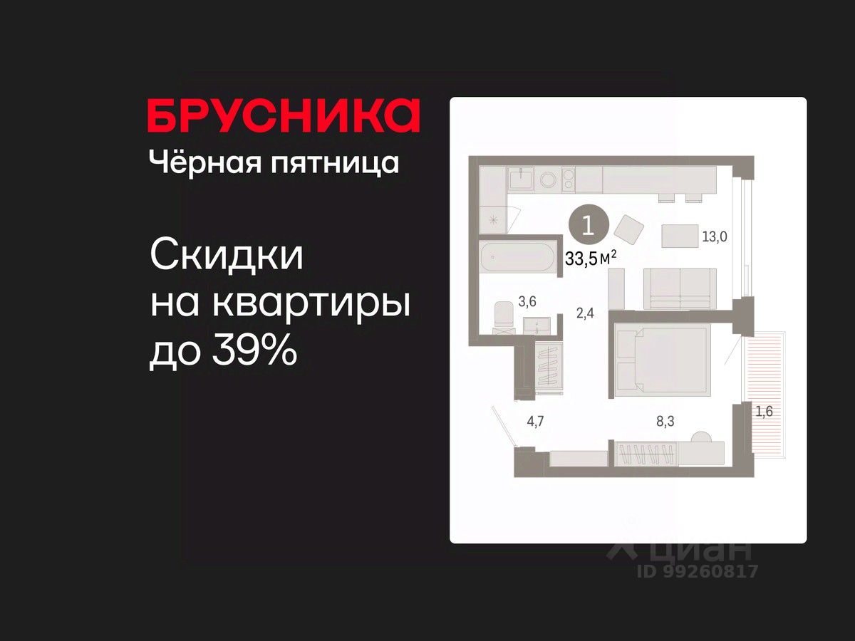 Однокомнатная квартира с предчистовой отделкой в ЖК "Зарека" на 20 этаже. Общая площадь: 33.53 кв.м., жилая: 8.3 кв.м., площадь просторной кухни-гостиной: 13 кв.м. Все окна выходят на одну сторону. В квартире один балкон, один совмещенный санузел. Высота потолков 2.7 м.