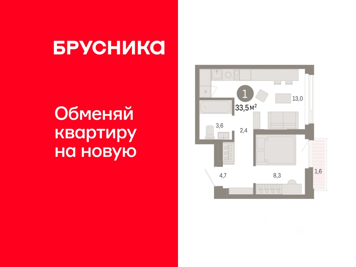 Просторная однокомнатная квартира с предчистовой отделкой в ЖК "Зарека" на 20 этаже. Общая площадь: 33.53 кв.м., жилая: 8.3 кв.м., площадь просторной кухни-гостиной: 13 кв.м. Все окна выходят на одну сторону. В квартире один балкон, один совмещенный санузел. Высота потолков 2.7 м.