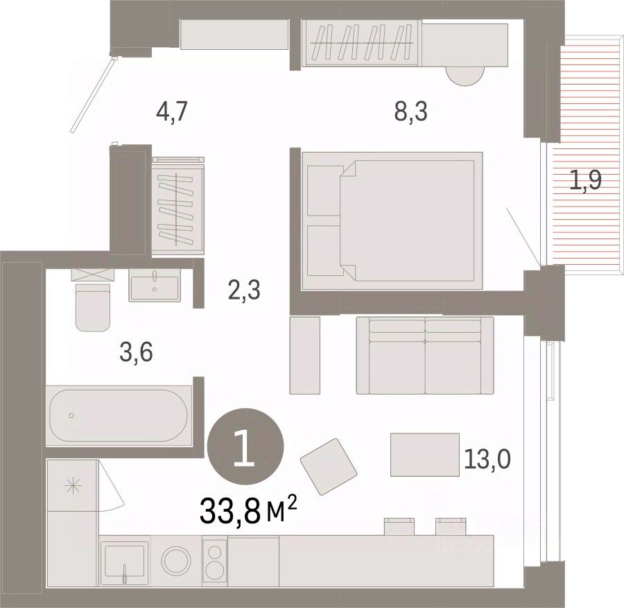 Однокомнатная квартира с предчистовой отделкой в ЖК "Зарека" на 20 этаже. Общая площадь: 33.77 кв.м., жилая: 8.3 кв.м., площадь просторной кухни-гостиной: 13 кв.м. Все окна выходят на одну сторону. В квартире один балкон, один совмещенный санузел. Высота потолков 2.7 м.