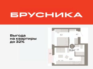 1-комн. квартира с предчистовой отделкой в ЖК "Зарека" на 19 этаже. Общая площадь: 33.78 кв.м., жилая: 8.3 кв.м., площадь просторной кухни-гостиной: 13 кв.м. Все окна выходят на одну сторону. В квартире один балкон, один совмещенный санузел. Высота потолков 2.7 м.