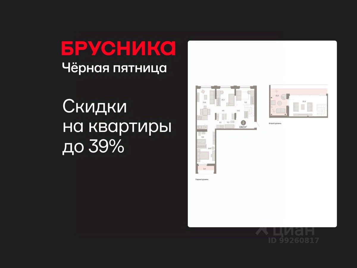 Двухуровневая квартира с кухней-гостиной и двумя спальнями в жилом районе "Зарека". Особенности планировки: без отделки, рабочий кабинет, двухуровневая, панорамное остекление, свободная планировка, разнесённые спальни, мастер-спальня, постирочная, терраса на крыше.