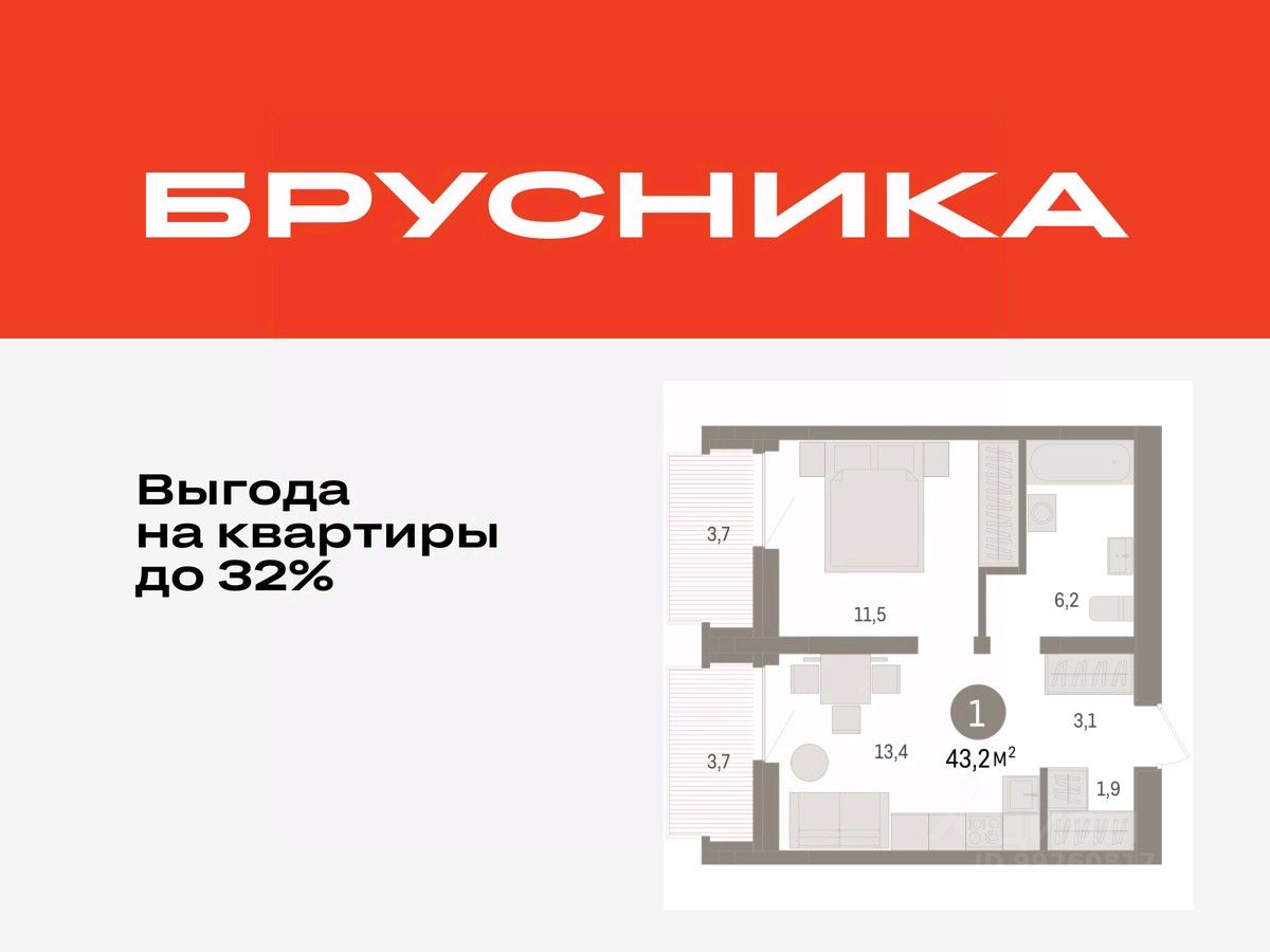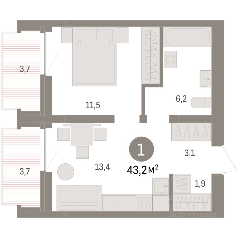 Квартира с кухней-гостиной и одной спальней в жилом районе "Речной порт". Особенности планировки: гардеробная, предчистовая отделка, балкон.