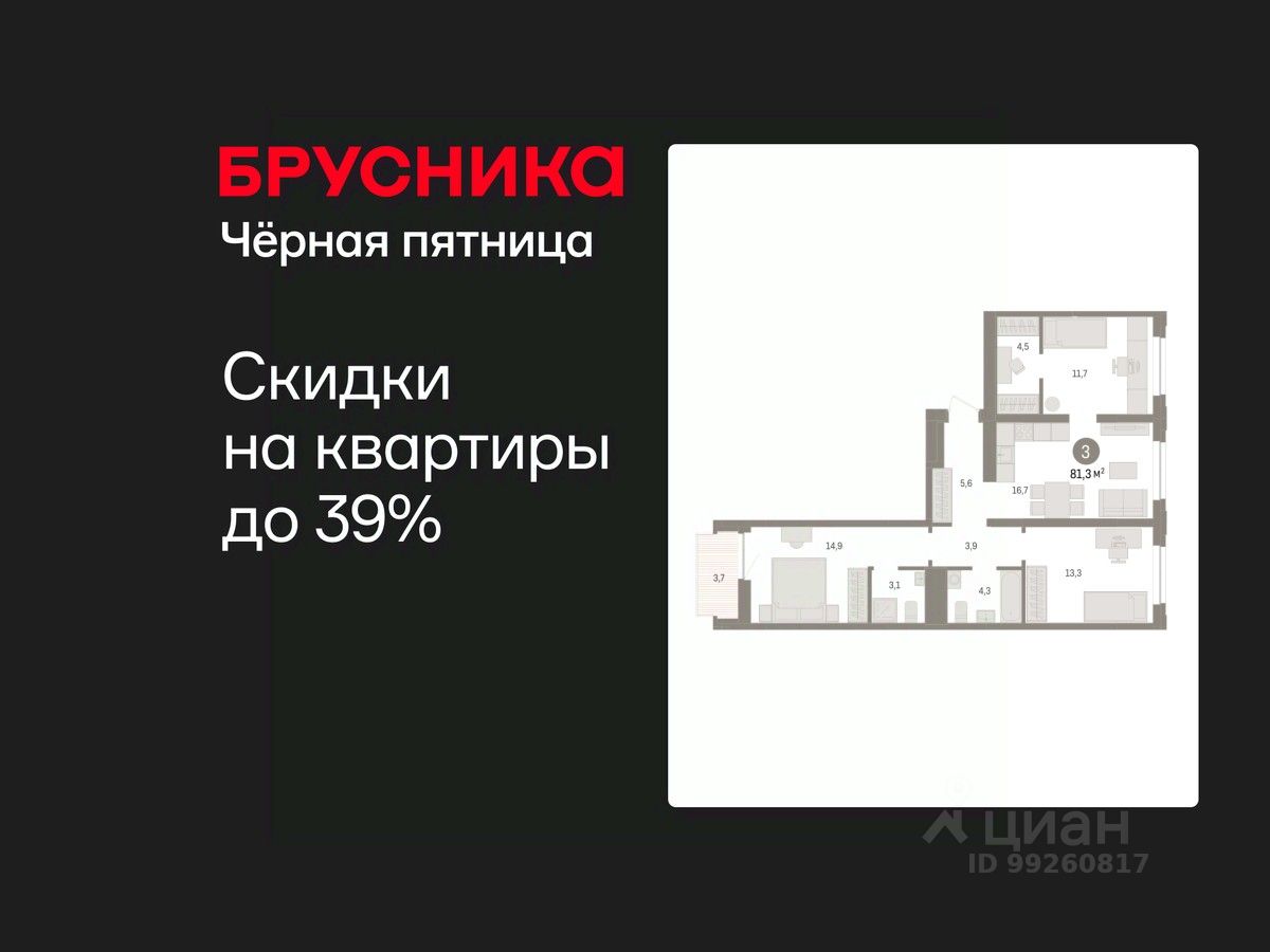 Квартира с кухней-гостиной и тремя спальнями в жилом районе "Речной порт". Особенности планировки: гардеробная, вид во двор, разнесённые спальни, предчистовая отделка, мастер-спальня, балкон.