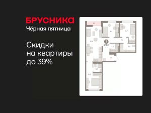 Квартира с кухней-гостиной и тремя спальнями в Октябрьском на Туре. Особенности планировки: гардеробная, вид во двор, лоджия, разнесённые спальни, предчистовая отделка, мастер-спальня.