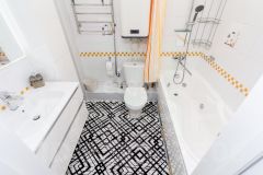 Уютная 3 комнатная квартира 85м2 в кирпичном доме комфорт-класса. В квартире выполнен свежий современный ремонт, новые м/к двери, обои под покраску окрашены в светлых тонах, в кухне и во входной зоне в квартиру керамогранит на полу, в комнатах ламинат, в совмещенном с/у кафель, установлены унитаз, ванна, раковина, водонагреватель, есть отдельная постирочная и при необходимости в ней можно организовать дополнительный туалет.