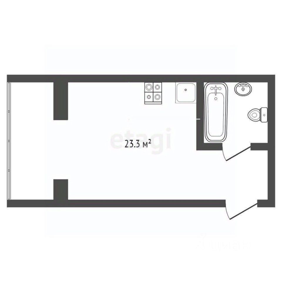 К продаже представлена уникальная студия площадью 23,3 кв. м с террасой, которая расположена в новом малоэтажном жилом комплексе Verno в районе Гилевской рощи.