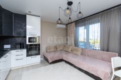 Из прихожей вы попадаете в светлую кухню-гостиную, сердце квартиры, где будет собираться вся семья. Здесь установлен стильный кухонный гарнитур с встроенной бытовой техникой, которая остается при продаже. Пространство идеально подходит как для уютных семейных ужинов, так и для встреч с друзьями.
