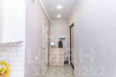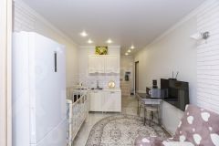 Квартира оснащена продуманным освещением, выделяющим входную группу, кухонную зону и зону отдыха. На полу прихожей и ванной комнате уложен керамогранит, а в зоне отдыха — качественный ламинат, что добавляет дополнительный комфорт.