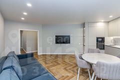 В квартире недавно выполнен современный ремонт из качественных материалов. Установлены кондиционеры. Окна выходят на две стороны дома.