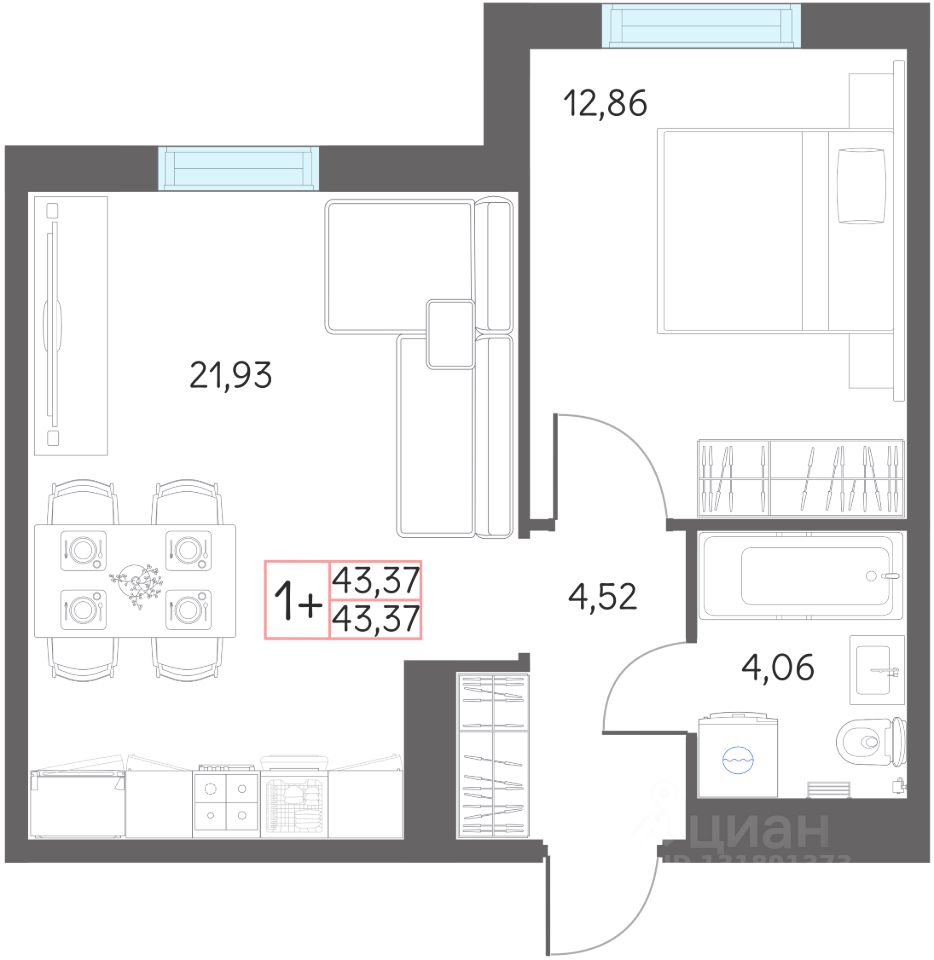 Продаётся 1-комнатная квартира в строящемся доме (ГП-1 (Дом 29)), срок сдачи: I-кв. 2027, общей площадью 43.37 кв.м., на 2 этаже. Рассвет в Тобольске - это жилой комплекс из 4 домов, расположенный в границах улиц Нефтехимиков и Александра Абдулова, созданный для семейного проживания.