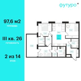 Продаётся 3-комнатная квартира в строящемся доме (Дом 6к2), срок сдачи: III-кв. 2026, общей площадью 97.6 кв.м., на 2 этаже. Новый жилой комплекс "Futuro" от застройщика "newton" расположен в г. Тюмень на Ставропольской улице.