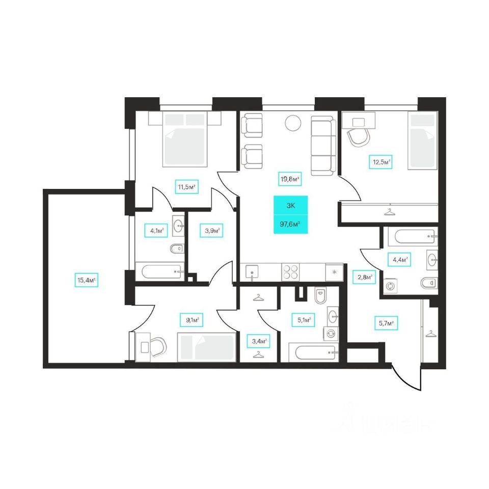 97,6 м²