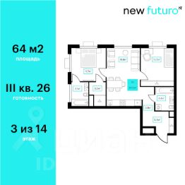 Продаётся 2-комнатная квартира в строящемся доме (Дом 6к2), срок сдачи: III-кв. 2026, общей площадью 64 кв.м., на 3 этаже. Новый жилой комплекс "Futuro" от застройщика "newton" расположен в г. Тюмень на Ставропольской улице.
