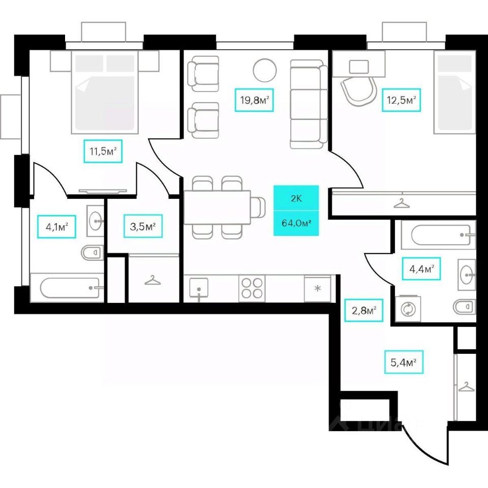 64 м²
