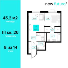 Продаётся 1-комнатная квартира в строящемся доме (Дом 6к2), срок сдачи: III-кв. 2026, общей площадью 45.2 кв.м., на 9 этаже. Новый жилой комплекс "Futuro" от застройщика "newton" расположен в г. Тюмень на Ставропольской улице.