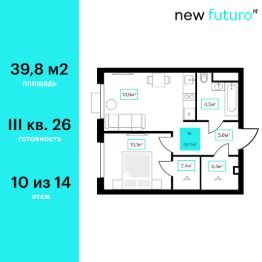 Продаётся 1-комнатная квартира в строящемся доме (Дом 6к2), срок сдачи: III-кв. 2026, общей площадью 39.8 кв.м., на 10 этаже. Новый жилой комплекс "Futuro" от застройщика "newton" расположен в г. Тюмень на Ставропольской улице.