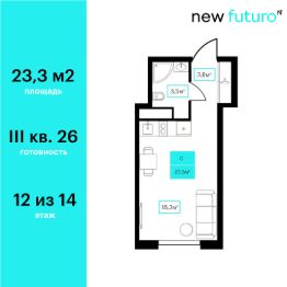 Продаётся студия в строящемся доме (Дом 6к2), срок сдачи: III-кв. 2026, общей площадью 23.3 кв.м., на 12 этаже. Новый жилой комплекс "Futuro" от застройщика "newton" расположен в г. Тюмень на Ставропольской улице.