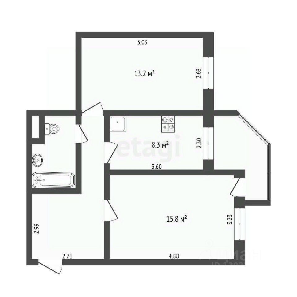 Комфортная планировка: просторная кухня, прямоугольные комнаты, создающие атмосферу уюта и гармонии.