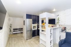 Состояние - современный ремонт. Ремонт делали 7 лет назад, требует частичного обновления. Санузел раздельный в кафеле пол и стены, установлена ванна, два небольших балкона по 3 м кв. застеклены деревянным стеклопакетом от застройщика. При продаже в квартире остаётся кухонный гарнитур и вся встроенная корпусная мебель.