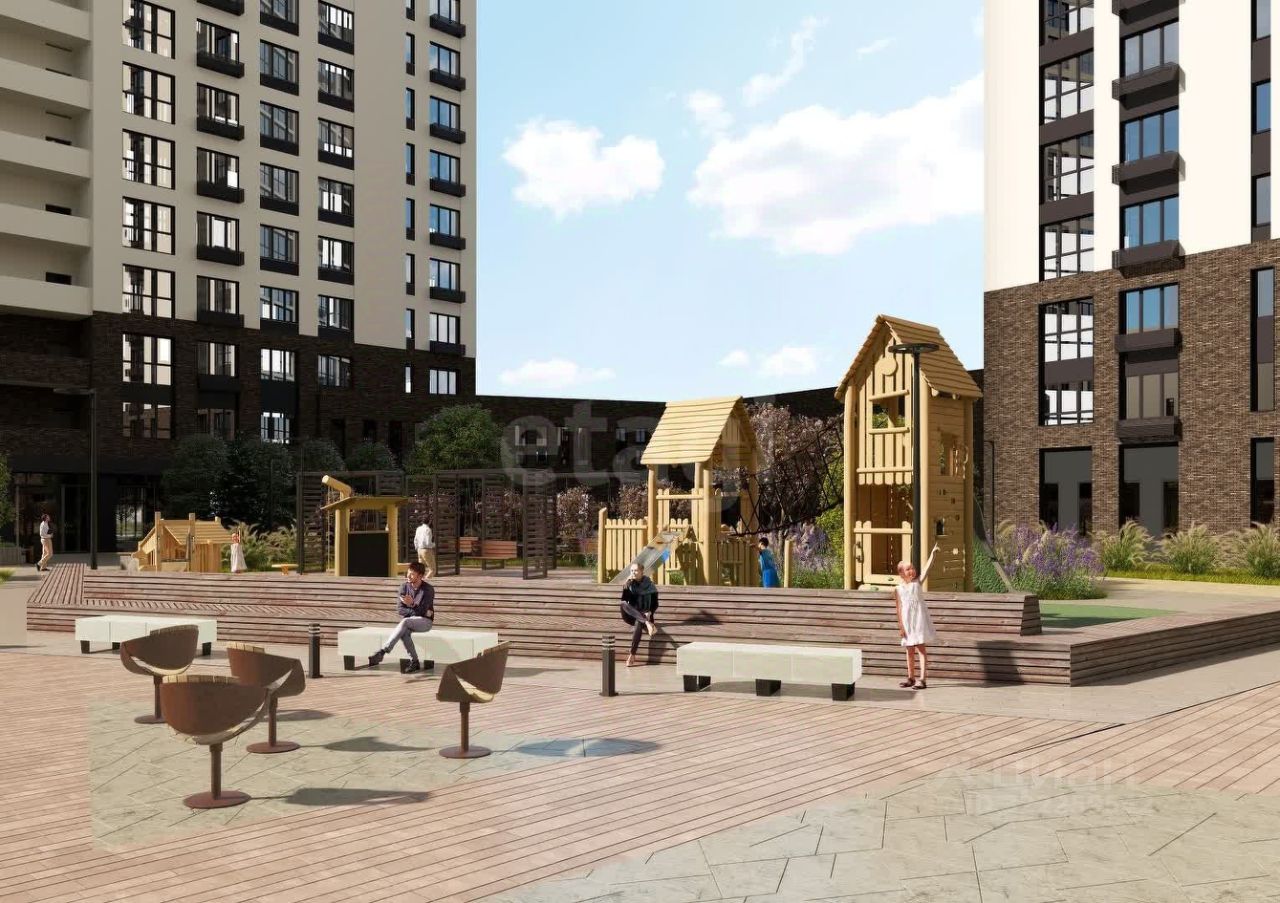 Концепция ЖК подразумевает пространство, свободное от машин. Все площадки для шумных командных игр также вынесены за пределы двора
