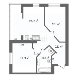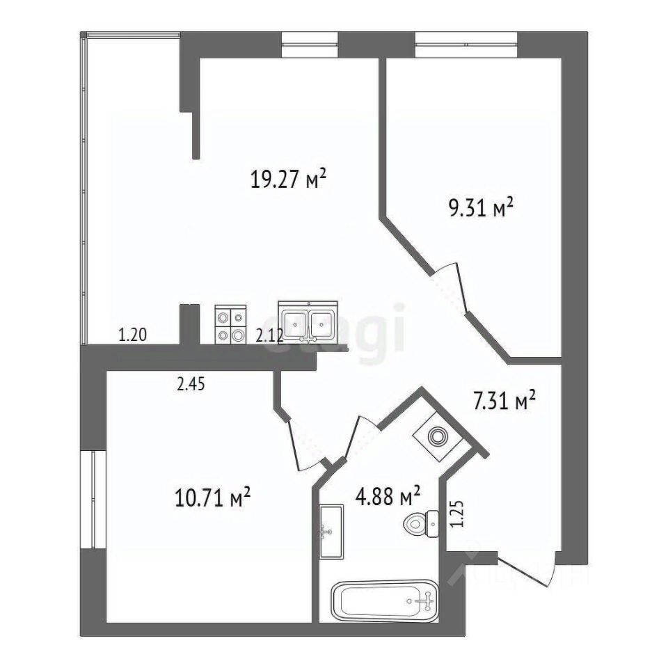 Функциональная плaниpoвкa: пpостоpная кухня-гоcтинaя, уютнaя спaльня, комната свободного назначения (возможно кабинет, детская), санузел с выделенным местом для стиральной машины.