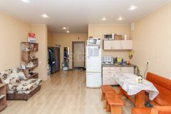 Студия площадью 33.43 кв. м. расположена в жилом комплексе "Москва" — перспективном районе с активно развивающейся инфраструктурой. Квартира выполнена в современном стиле: светлые стены, натяжные потолки с точечным освещением, качественная отделка. Ванная комната облицована плиткой, лоджия застеклена, что повышает энергоэффективность и комфорт в любое время года. Окна выходят во двор, где оборудована детская площадка, обеспечивая тишину и отсутствие уличного шума.