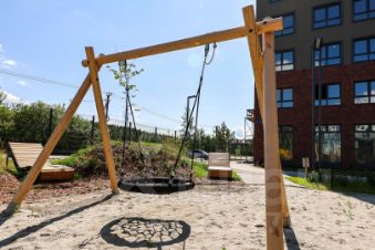 - Оборудованные детские площадки из натурального дерева.
