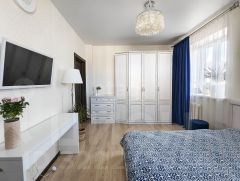 Качественные материалы - спальня лазурит с немецкой фурнитурой, кухонные шкафы с механикой Blum, двери от краснодеревщика, плитка Kerama Marazzi.