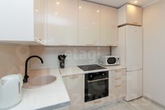 В квартире выполнен ремонт, с использованием качественных материалов. На полу ленолиум, в сан. узле керамогранит, кухонный гарнитур со встраиваемой бытовой техникой ( холодильник, варочная панель, духовой шкаф, вытяжка), кровать в комнате остается.