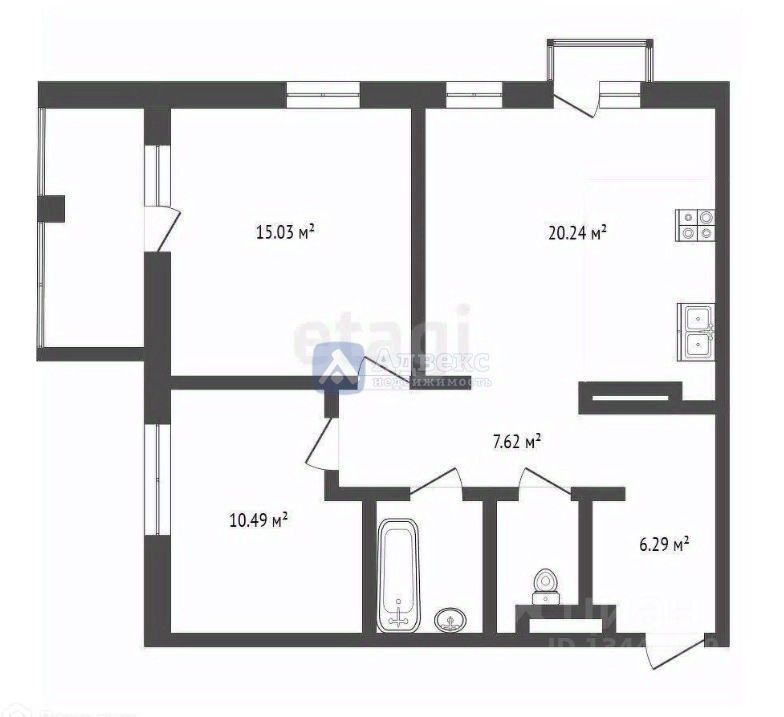 Установлены кухонная мебель с техникой:варочная панель, духовой шкаф, СВЧ-печь, посудомойка.