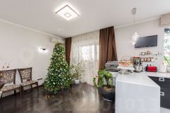 Просторная кухня гостиная 40 кв.м и три изолированные комнаты, что очень удобно! Так же в квартире два сан.узла, постирочная, балкон и лоджия. В квартире выполнен современный ремонт, с применением дорогостоящих материалов. На полу везде — ламинат, на кухне — керамогранит. Теплые полы установлены на кухне, в сан.узлах, на лоджии, балконе, в прихожей; кондиционеры во всех комнатах; водонагреватель на 100 литров; видеодомофон; натяжные потолки.