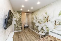 Квартира с современным ремонтом в светлых тонах: пластиковые окна, потолок натяжной, на стенах обои. Во входной зоне и в санузле теплый пол и плитка — уют и комфорт вашего дома.