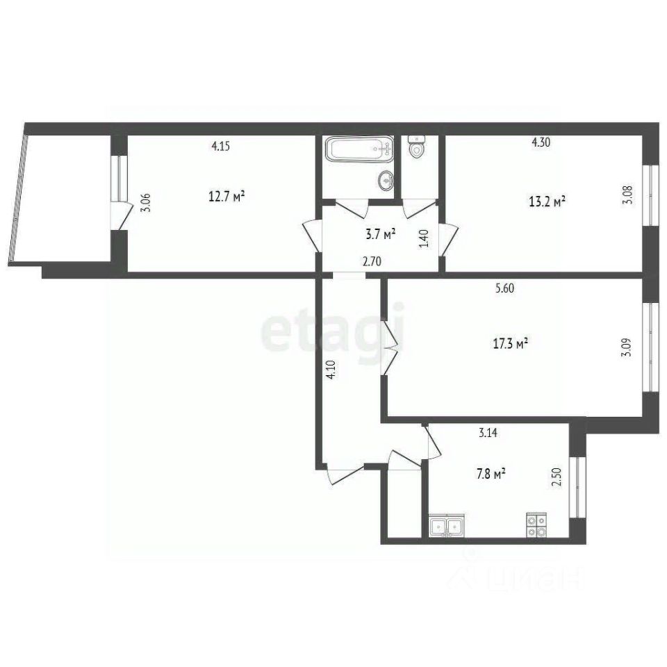 Представляем к продаже просторную квартиру площадью 66,5 квадратных метров в самом центре города Тюмени.