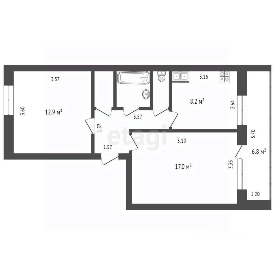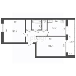 Квартира включает в себя две комнаты. Санузел раздельный, оборудован всем необходимым. В квартире установлена железная дверь, обеспечивающая безопасность жильцов. Также в наличии счетчики воды. Балкон присутствует.