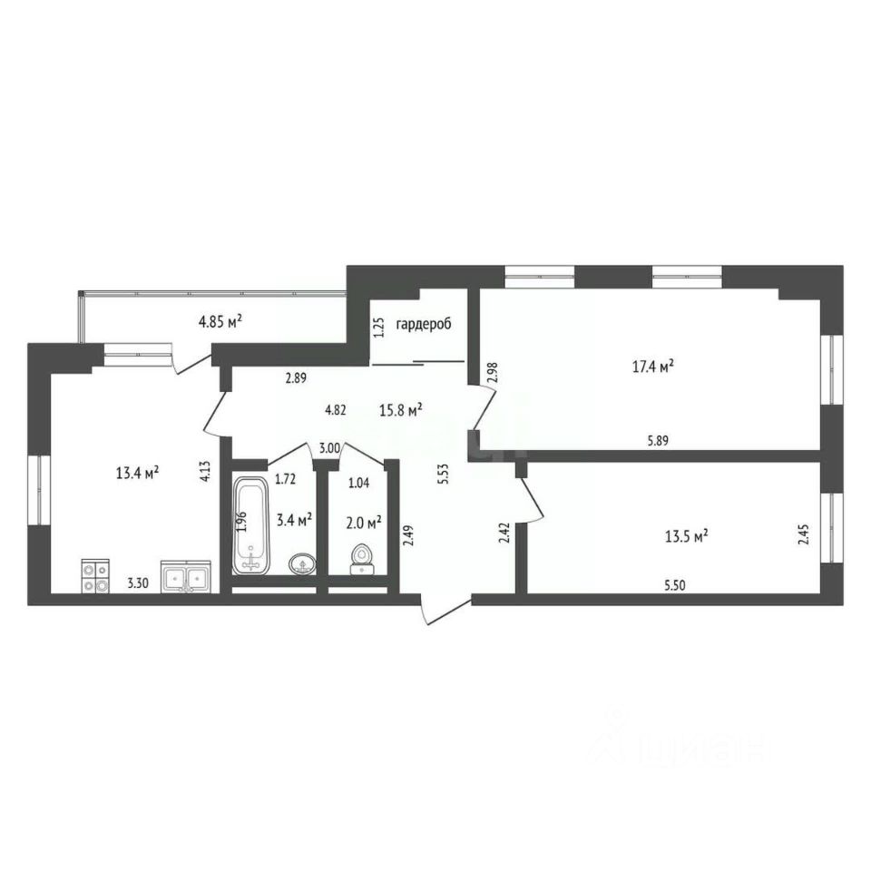 Просторная квартира 65,5 м² с продуманной планировкой: