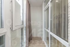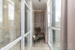 Отдельного внимания заслуживает утепленный балкон, выполненный как лаунж-зона панорамный стеклопакет заменен на тройной, имеется электробатарея и теплый пол.