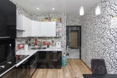 Кухня — светлая, удобной планировки. Для новых владельцев остаются встроенный духовой шкаф с варочной поверхностью и компактная посудомоечная машина Weisgauff. Кухонный стол можем оставить по договорённости.