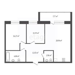 - формат 2+ (2 комнаты и большая кухня-гостиная 28м2)