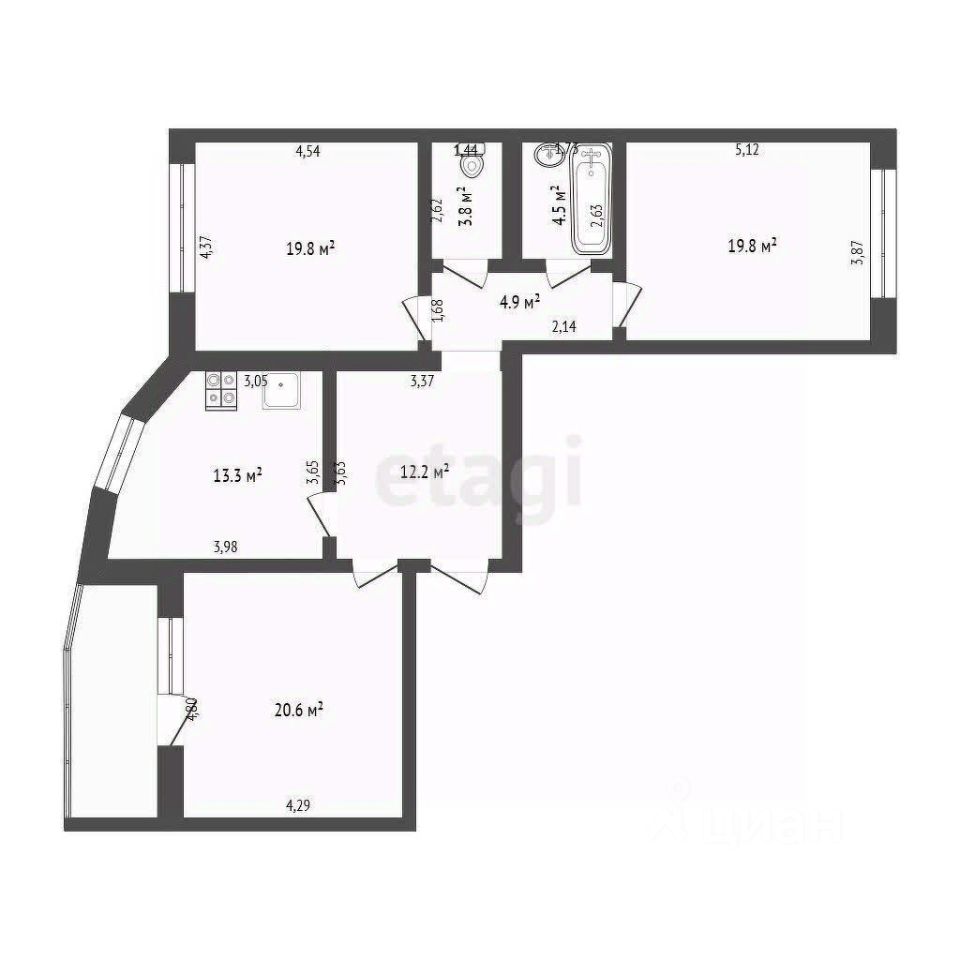 Разумная и комфортная планировка. Две просторные детские 19 м2, родительская комната 20 м2, кухня 13.3 м2.