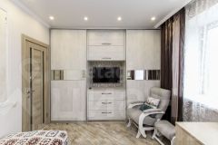 В квартире сделан современный дизайнерский ремонт. При продаже остаются : кухонный гарнитур, два шкафа-купе, рабочая зона в детской комнате.