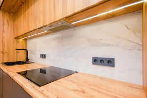 Квартира выполнена по дизайн-проекту с использованием качественных и износостойких материалов: