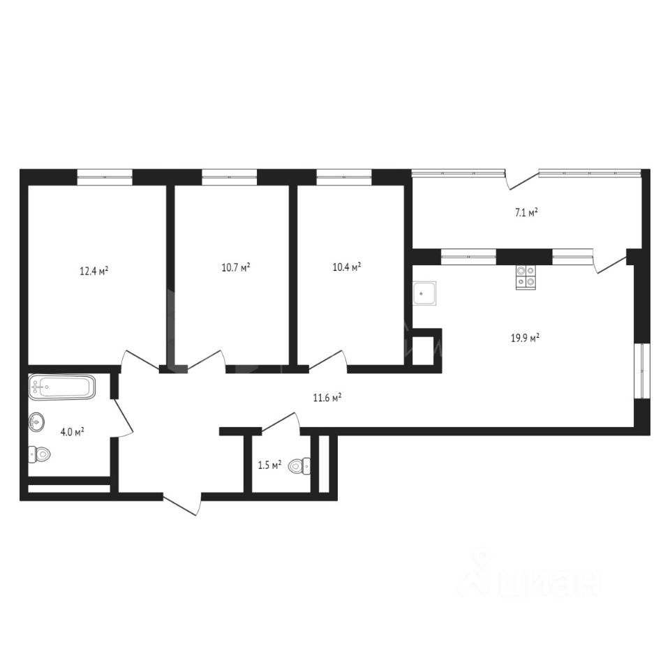 • Два санузла (один — совмещён с ванной)