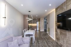 Аналогов данной квартиры нет, пространство квартиры продумано до мелочей, в каждой детали прослеживается безупречный вкус, ремонт из качественных материалов. Входная группа оборудована большим гардеробом для верхней одежды. Просторная кухня-гостиная станет центром вашего домашнего уюта. Установлен качественный кухонный гарнитур со встроенной техникой, а именно: духовой шкаф, микроволновая печь, посудомоечная машина, варочная панель, вытяжка и холодильник, много разноуровневого света. В зоне гостиной уютный диван, где можно расслабиться после долгого дня, наблюдая за кулинарным творчеством или наслаждаясь общением с близкими. Спальня представляет собой уютное и функциональное пространство для отдыха и сна, также оборудована нишей под шкаф-купе, комфортной кроватью, современными прикроватными тумбами, где можно разместить любимые книги или другие предметы, выводом под кондиционер и дополнительным освещением. Два совмещенных санузела со всем необходимым для комфортного проживания.