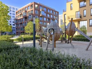 Дом переменной этажности. Часть дома, которая выходит на пешеходный бульвар, выполнена в ансамбле урбан-вилл и является акцентной. Большие игровые зоны для детей, спортивные площадки, места для отдыха взрослых. Подъезды с приятным дизайном и атмосферой дома. Продуманы мягкие зоны отдыха и ожидания гостей, сделан просторный и светлый лифтовой холл с зеркалами и картинами. Очень востребованный, комфортный, классный, современный комплекс.