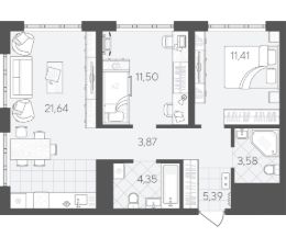 Квартира с 2 спальнями площадью 61,74 кв.м