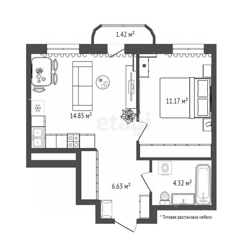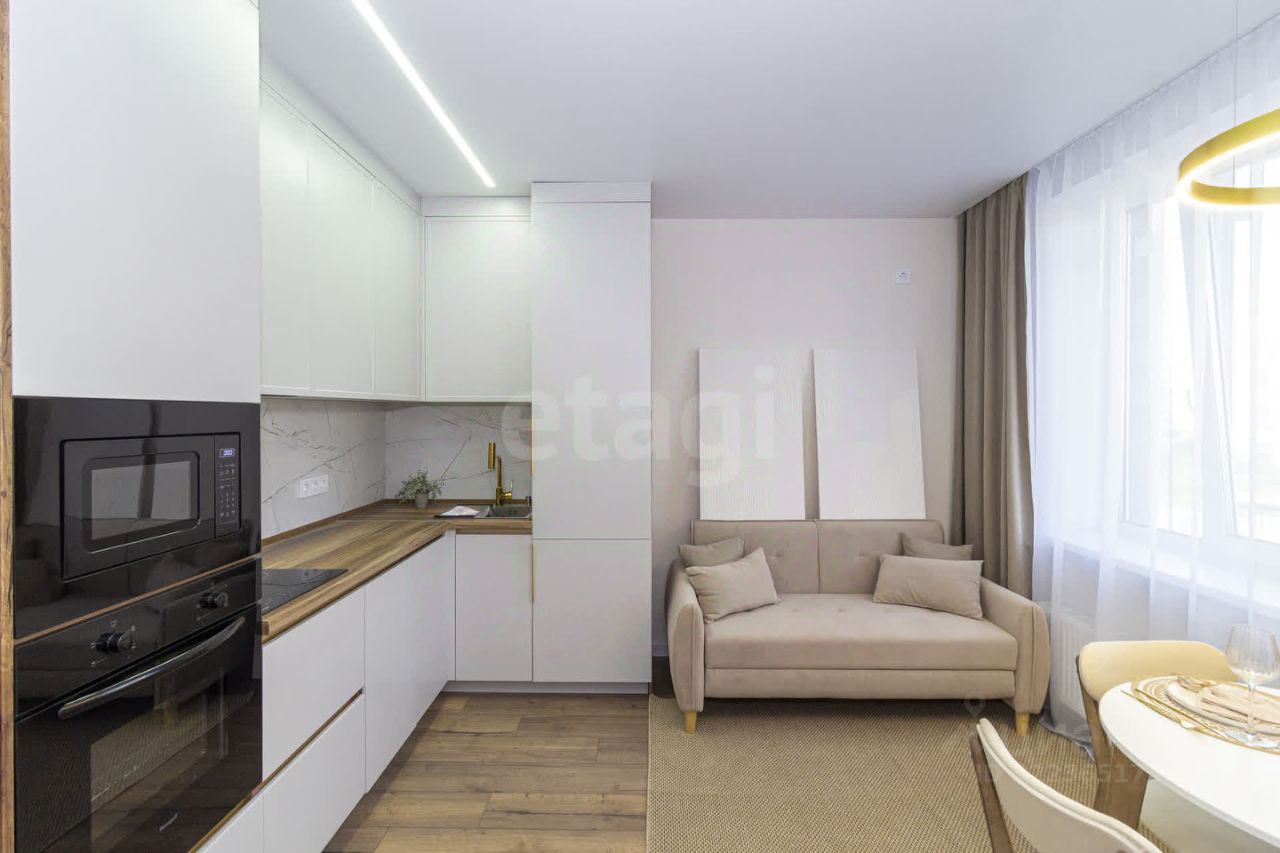 Полностью меблированная, она уже готова к вашему заселению. В квартире есть всё необходимое: современный кухонный гарнитур, шкаф-купе, обеденный стол и удобный диван.